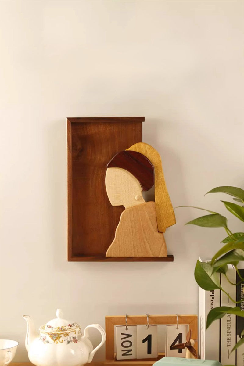 Black Walnut Girl with Pearl Earrings Wall Decor Handcrafted from rich black walnut wood, this striking wall hanging captures timeless elegance through minimalist portraiture. The delicate pearl earrings add a refined touch, making it an ideal statement piece for contemporary living spaces. Its warm wood tones and subtle craftsmanship complement premium interior aesthetics while maintaining the understated sophistication your brand is known for. A versatile addition to any room seeking quiet luxury.