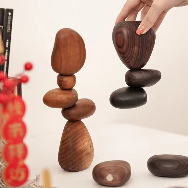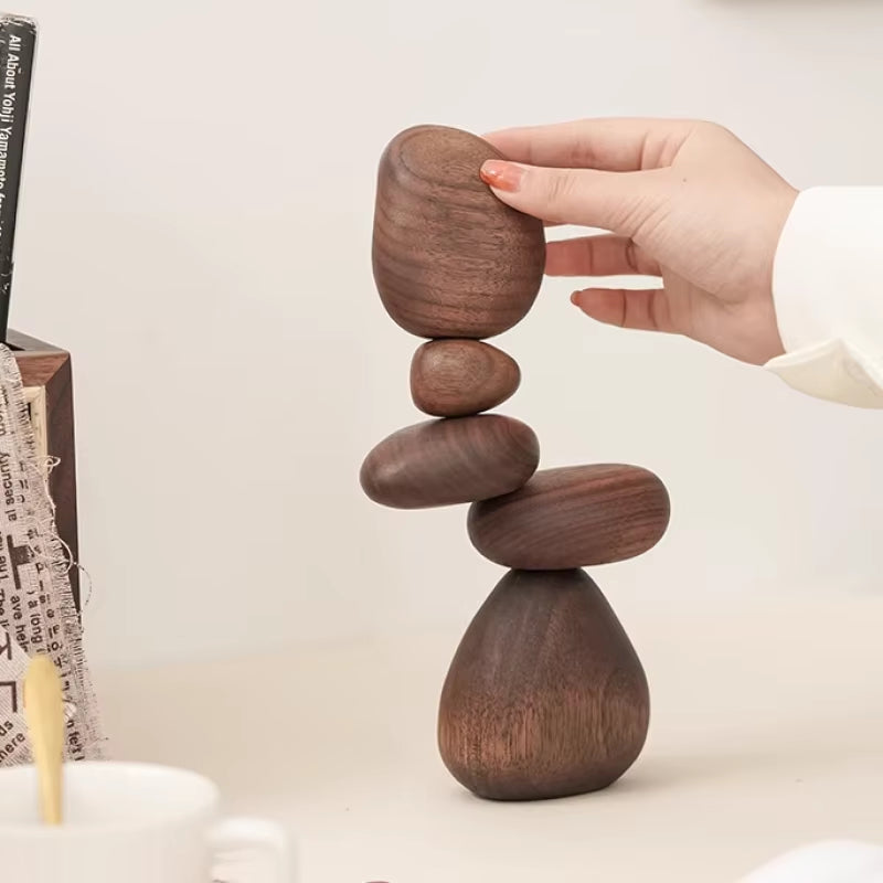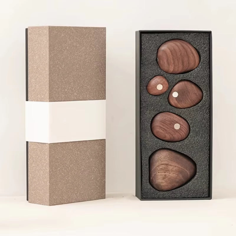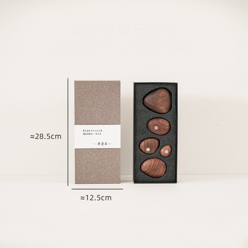 A sculptural wooden ornament crafted from solid black walnut, featuring magnetic suction technology that enables dynamic balancing displays. This minimalist decor piece combines natural wood grain with functional magnetism, making it ideal for shelving, desk arrangements, or wall-mounted presentations. The refined craftsmanship and understated aesthetic complement contemporary interiors while serving as a conversation-starting accent for curated collections and gift boxes.