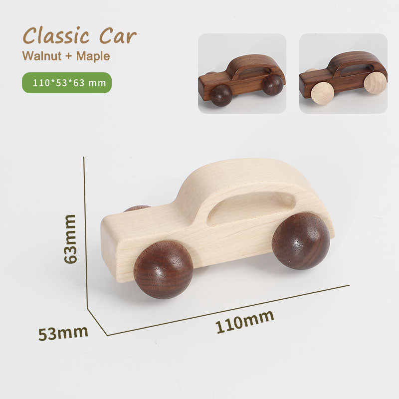 Handcrafted from premium walnut and maple, this wooden Beetle toy car combines sustainable craftsmanship with timeless design. Measuring 165x84x47mm, it serves as both an engaging plaything and a refined decorative accent. Perfect for environmentally conscious families seeking toys that prioritize quality and natural materials over mass production.